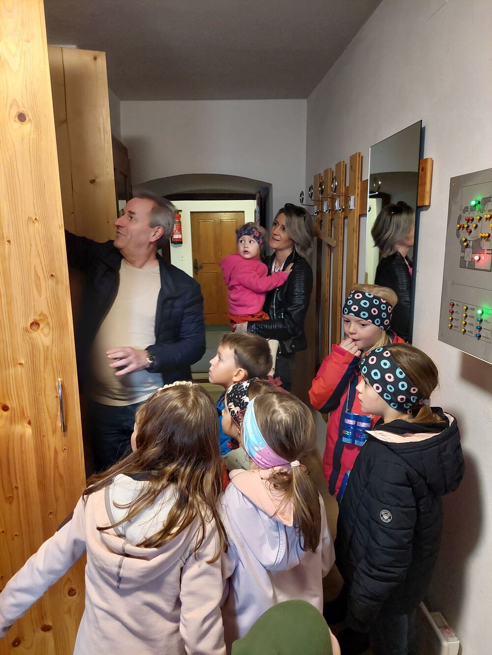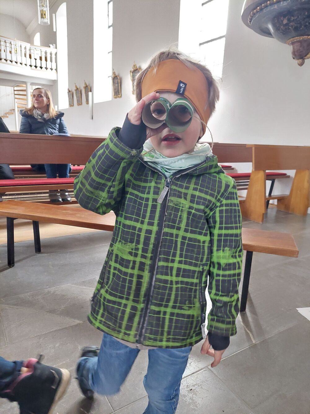 Ein Blick durch das selbstgebastelte Fernrohr und dann ging es los auf Entdeckungstour durch die Kirche. In Gruppen besuchten die Kinder die verschiedensten Stationen. Die Sakristei wurde von Dietmar Hirschbühl erklärt, Pfarrer Ratz ließ die Augen beim neuen Taufbecken, der Osterkerze sowie dem Altar strahlen. Sandra stimmte mit den Kindern die Orgel an und mit Anna wurden bei den Opferkerzen Wünsche zu Gott gesendet und den Beichtstuhl begutachtet. Zum Abschluss durften die Erstkommunionskinder noch den Kirchturm erklimmen.